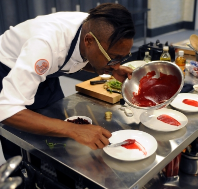Doug, also like Mei, has been hanging out around the winners circle. Doug is constantly cooking delicious food with original flavors. He takes sly risks, but stays true to his roots, making him a threat for the top. Who else would have the courage to roast A WHOLE rabbit in that short amount of time!? Doug seems like he is waiting to pull out his true colors and I would watch out for him in the next few episodes.