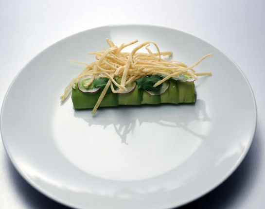 The elimination challenge would encompass the chef to all work together to form a six-course meal that had a consistent flow. They were to focus their dishes around six Mexican ingredients. It basically became a game of who called it first to see who would end up with what. Gregory took guava and poblano peppers. Mei chose to work with avocado and huitlacoche. (A fungus that grows within corn) That left Doug with queso and escamoles. Escamoles are ant eggs, a big delicacy in Mexico. Doug was less than thrilled with his choices, but he decided since Katsuji was his sous chef, they would be able to tackle the ingredients.