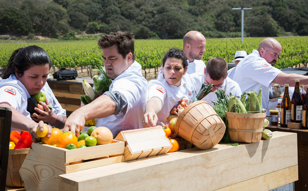 The chefs arrived in Santa Barbara and were quickly thrown into the culture and atmosphere of the lively seascape. After getting a quick look around the marina the Quickfire was announced! The chefs learned they would be cooking with sea urchin. Of course they won’t be cooking the urchin on its own. Padma took the chefs to meet Dana Cowin from Food & Wine at Sanford Winey to explain the rest of the challenge.